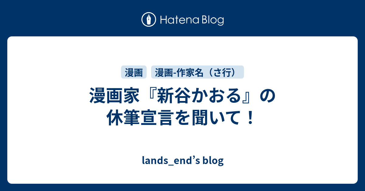 漫画家 新谷かおる の休筆宣言を聞いて Lands End S Blog